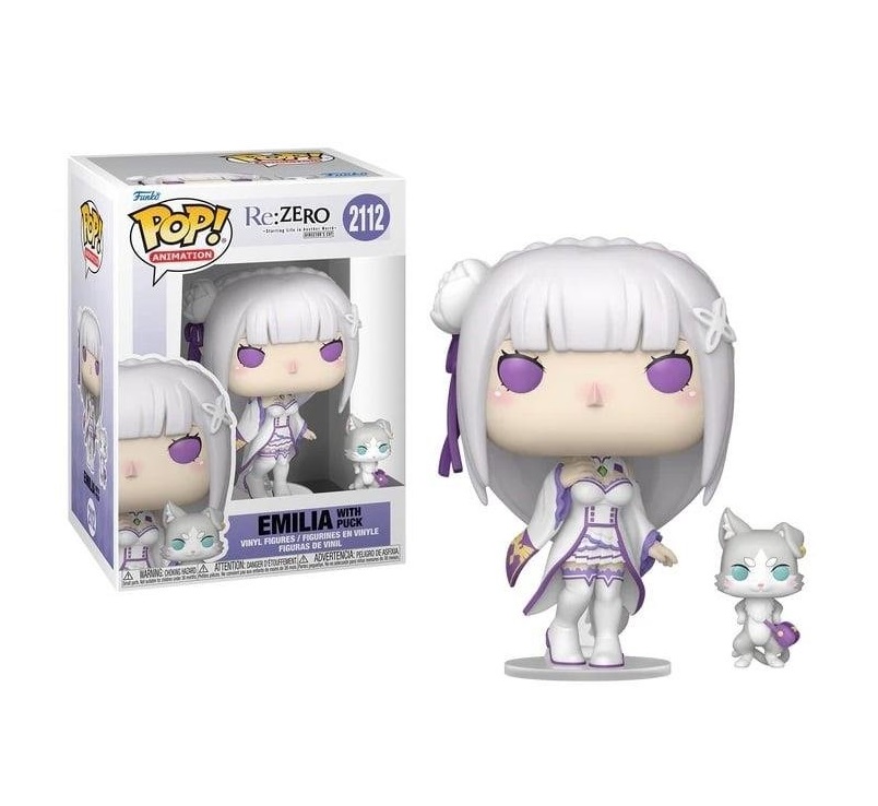 - From Re: Zero – Starting Life in Another World, Emilia with Puck, as a stylized POP vinyl from Funko!