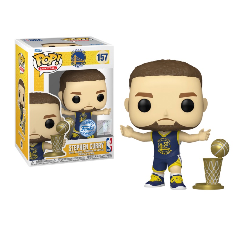 - From NBA, Stephen Curry (Special Edition) with the Championship Trophy as a stylized POP vinyl from Funko!