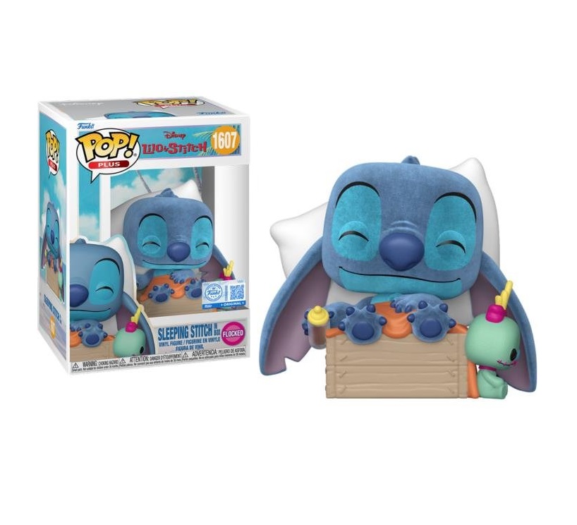 - From Disney’s Lilo and Stitch, Sleeping Stitch in Box (Flocked) (Special Edition), as a stylized Pop!